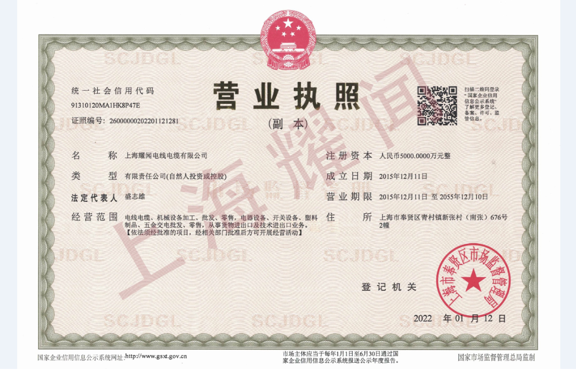 上海耀聞電線電纜有限公司成立于2015年,注冊資本5000萬元人民幣。是一家專注于電線電纜的研發(fā)、生產(chǎn)及銷售的高新技術(shù)企業(yè)。